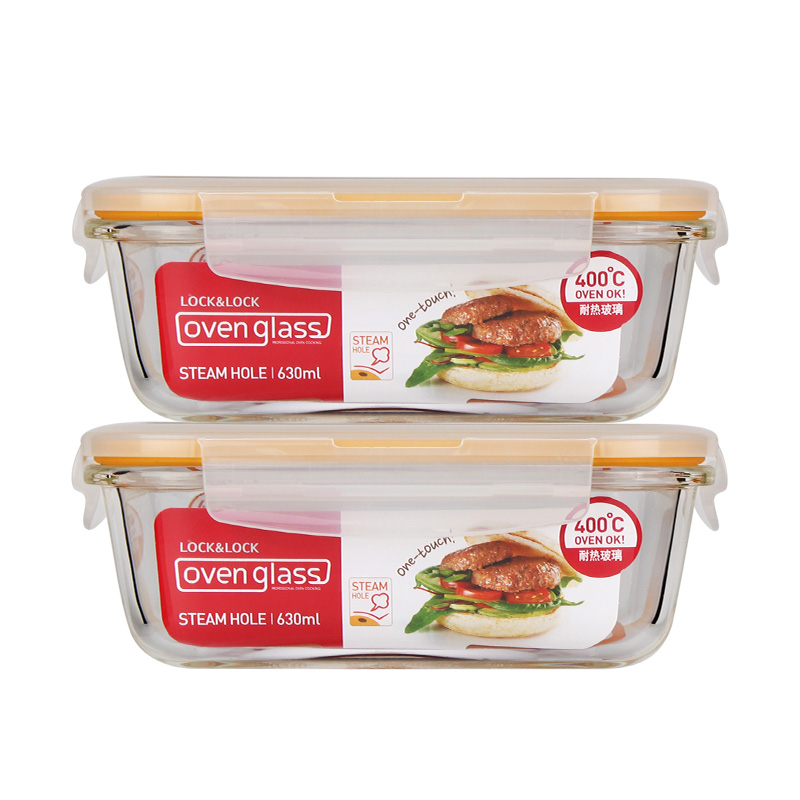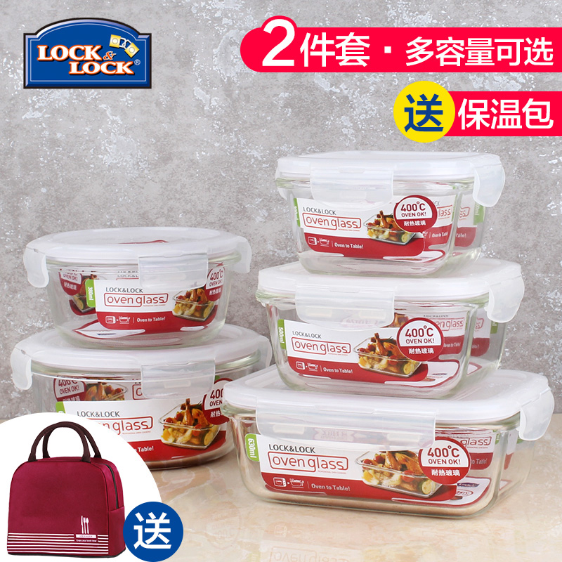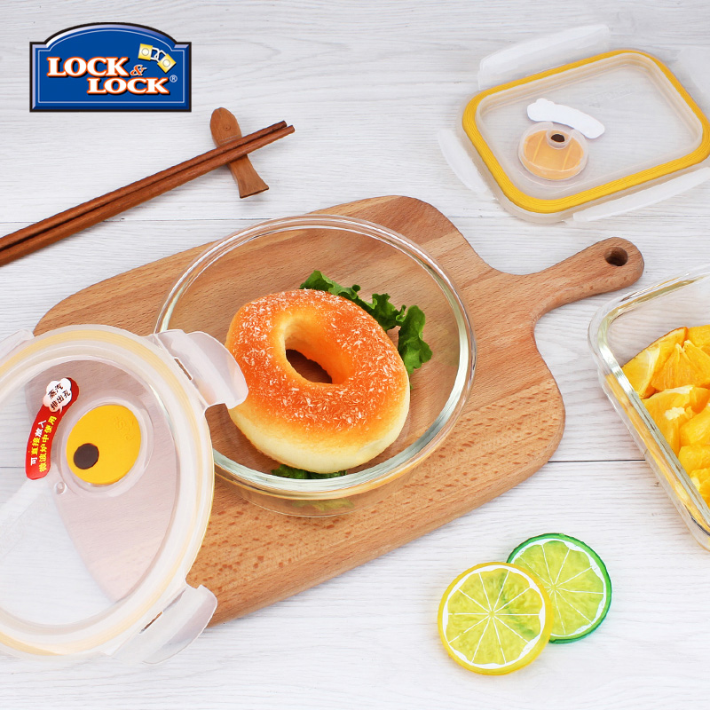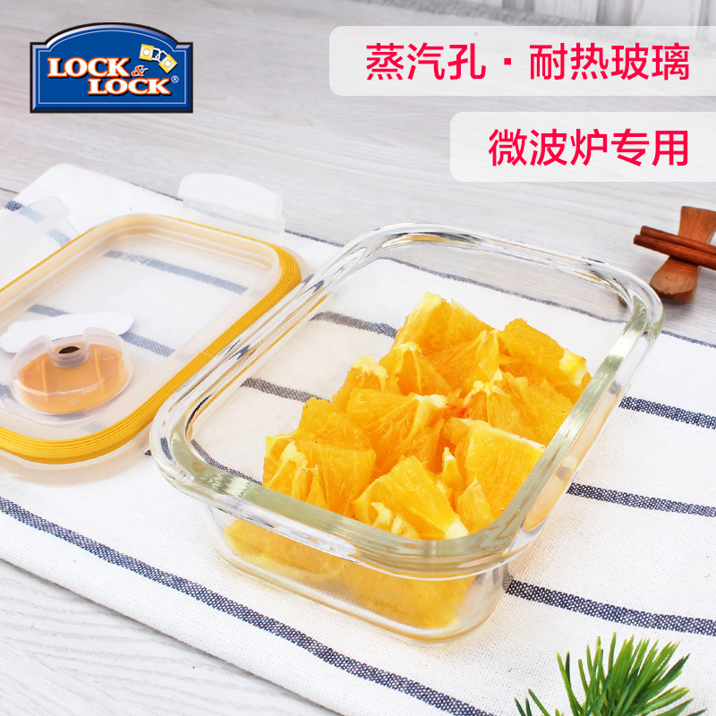 Lock lock lock fresh box Glass lunch box Microwave sealed heat-resistant glass bowl Transparent buckle fresh box