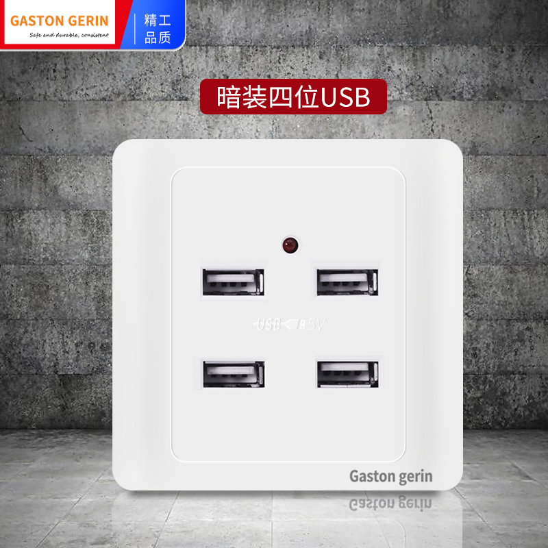 Dormitory Worksite Usb Four Panels 220V Wisdom Hui Type Cell Phone Charge 86 Type 4 Holes USP Socket Panel Concealed