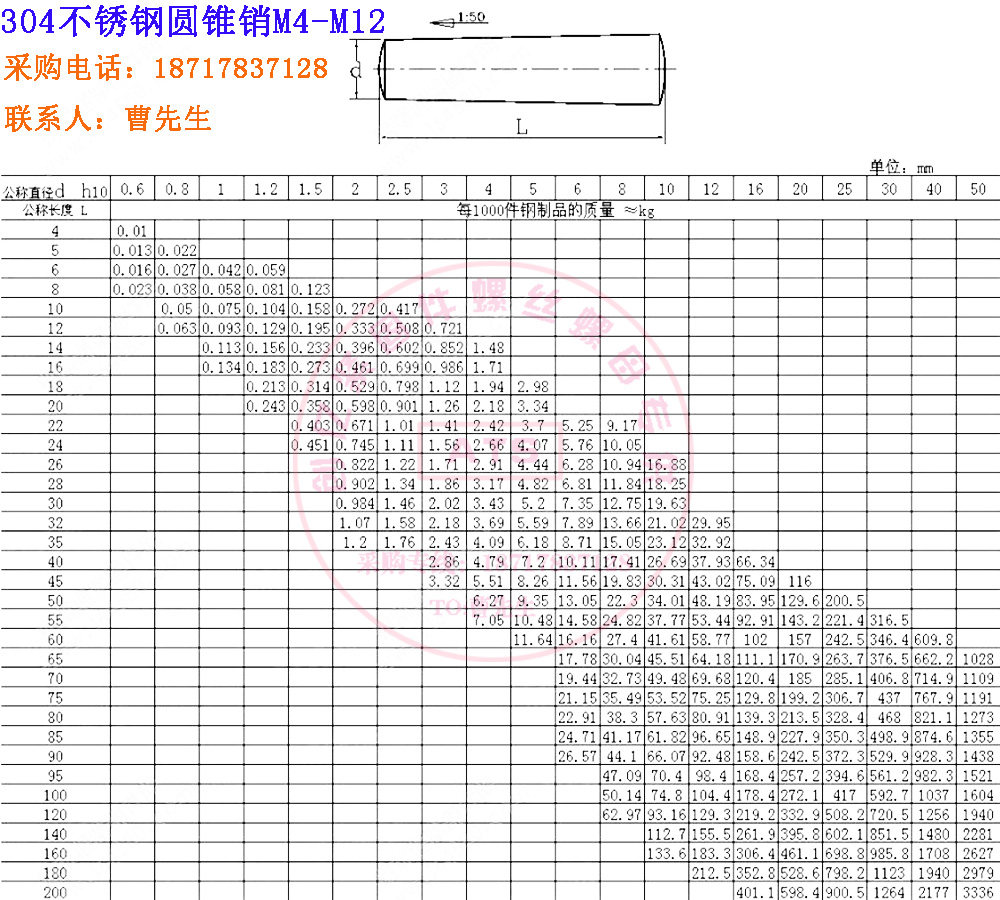 304 stainless steel GB117 tapered pin pin positioning pin pin M4 * 10 12 12 20 20 25 30 35