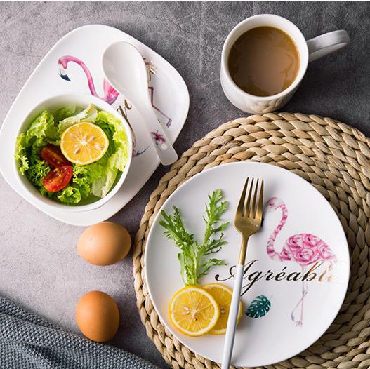 Small wooden spoon small steel fork small steel spoon white coffee spoon good morning plate (diameter 20cm)PA plate (diameter 20cm) coffee cup set (including cup dish spoon) flamingo 8 inch