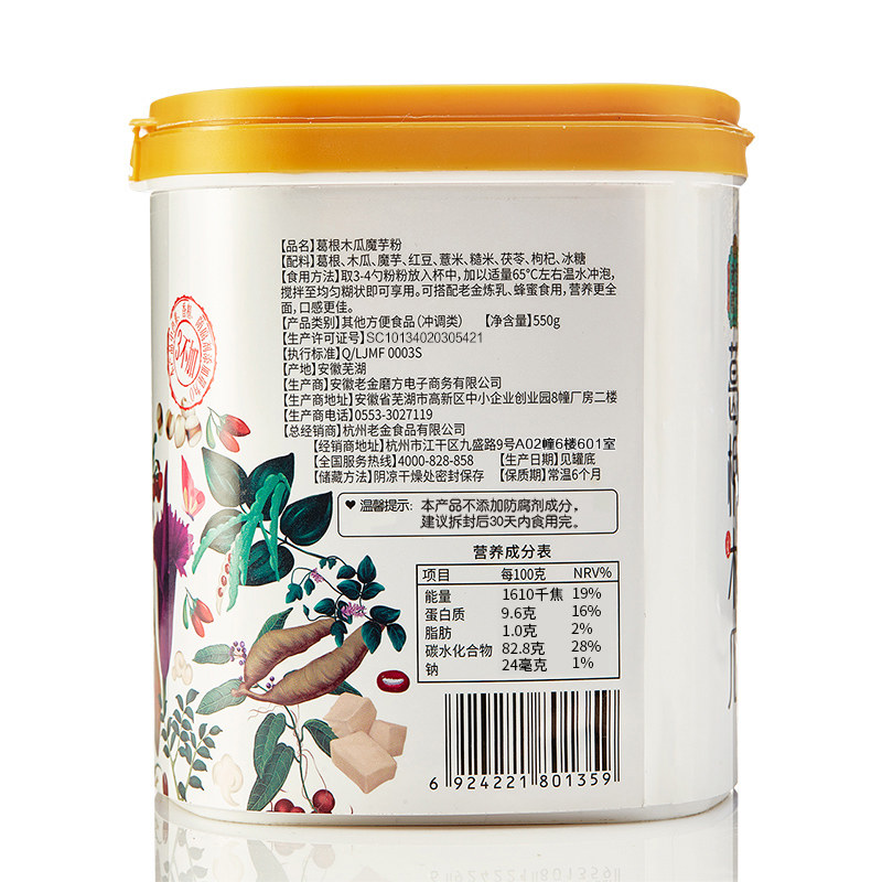 Laojinmofang kudzu root papaya konjac powder meal replacement papaya kudzu root powder ready-to-eat red bean barley powder 550g