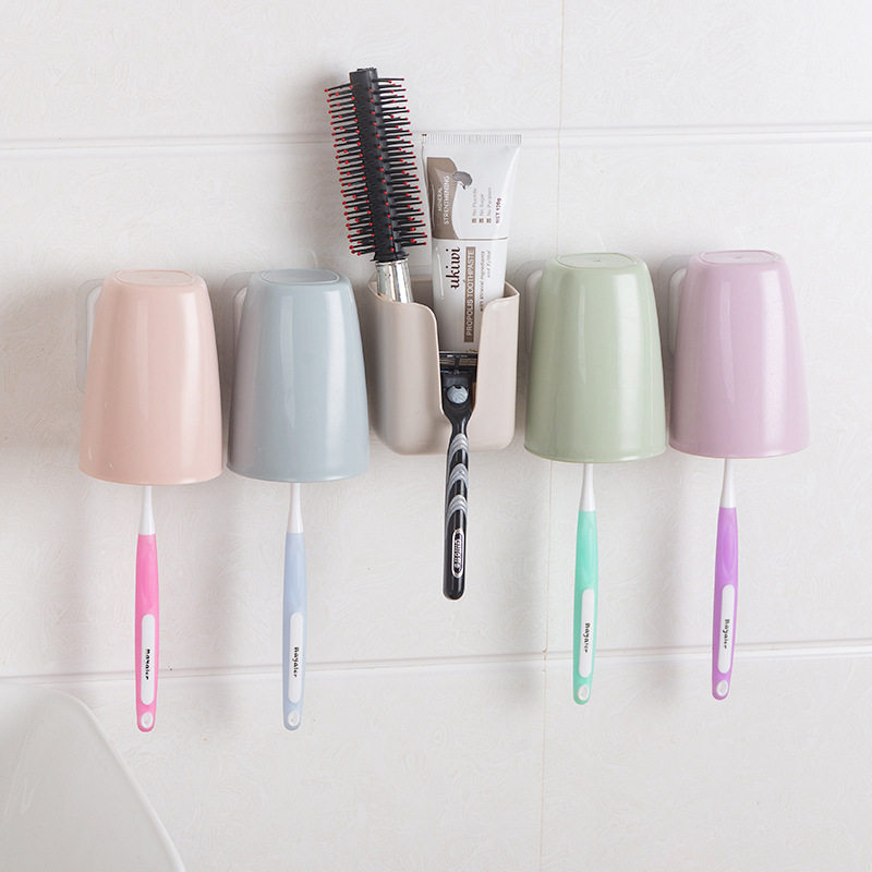 Free Punch Suction Wall Type Toothbrush Holder Suit Gargling Cup Toothbrush Cup Plastic Cup Toothbrush Shelve Wash Suit