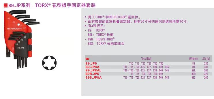 Facom Tools 6 pieces of L-shaped Torx Flower Wrench Suite 89R JP6
