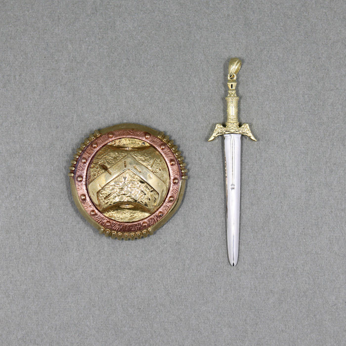 Copper shield, silver sword