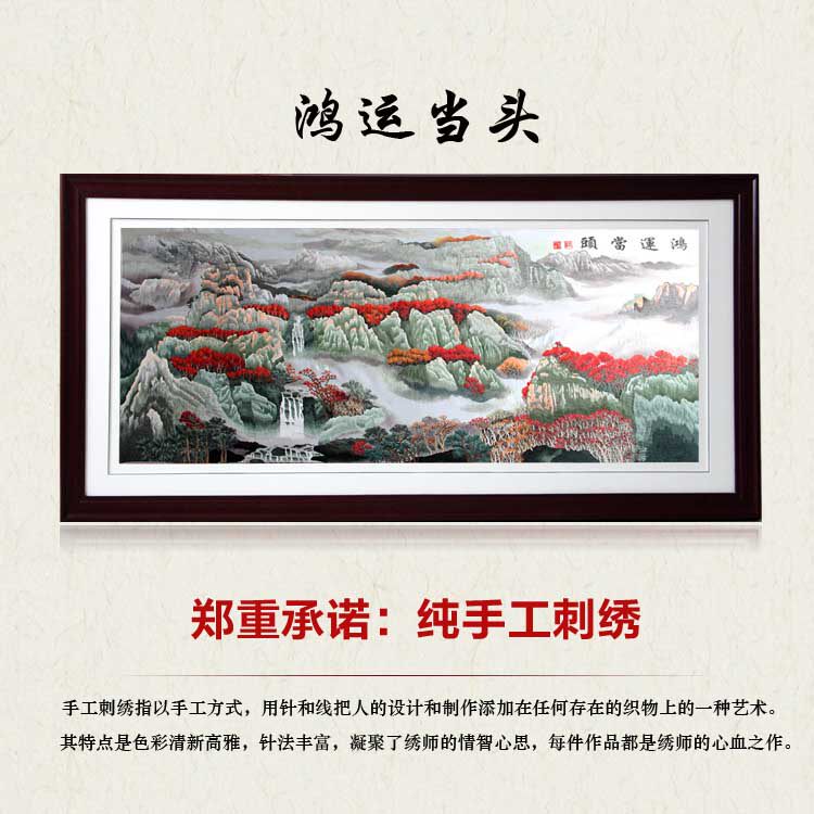 Han embroidery boutique Hongyun Dangtou mountain peak good feng shui atmospheric style living room bedroom decorative painting pure hand embroidery