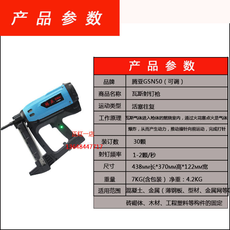 Tenya gas gun nail gun lithium battery powerful adjustable nail depth door and window installation accessories