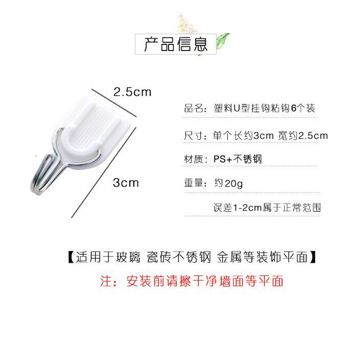 3 cm U shape glued hook pack (6) 3 cm U shape adhesive hook 1
