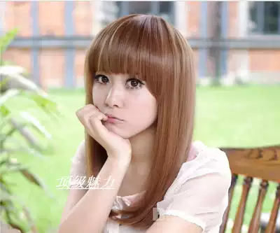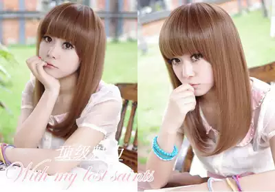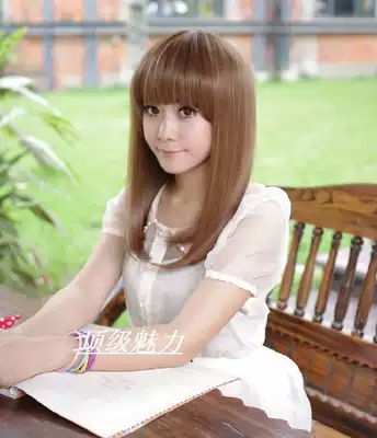 True hair set wig women's long straight hair Korean version of temperament face repair inner bag pear flower hairstyle full wig headgear
