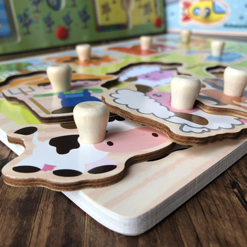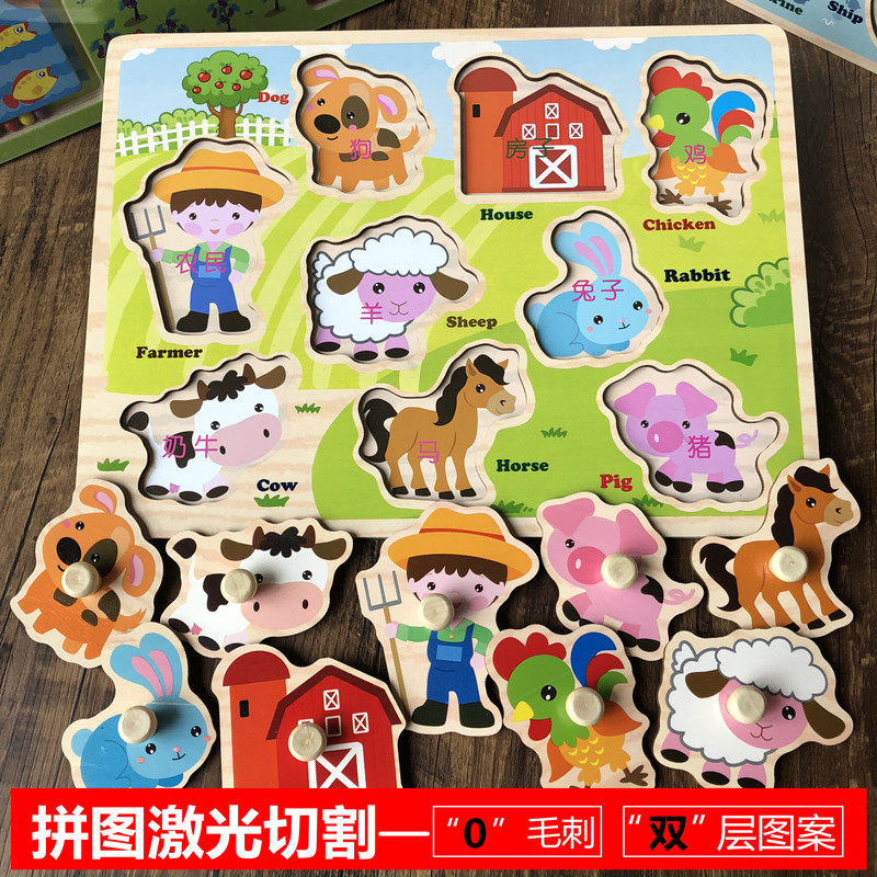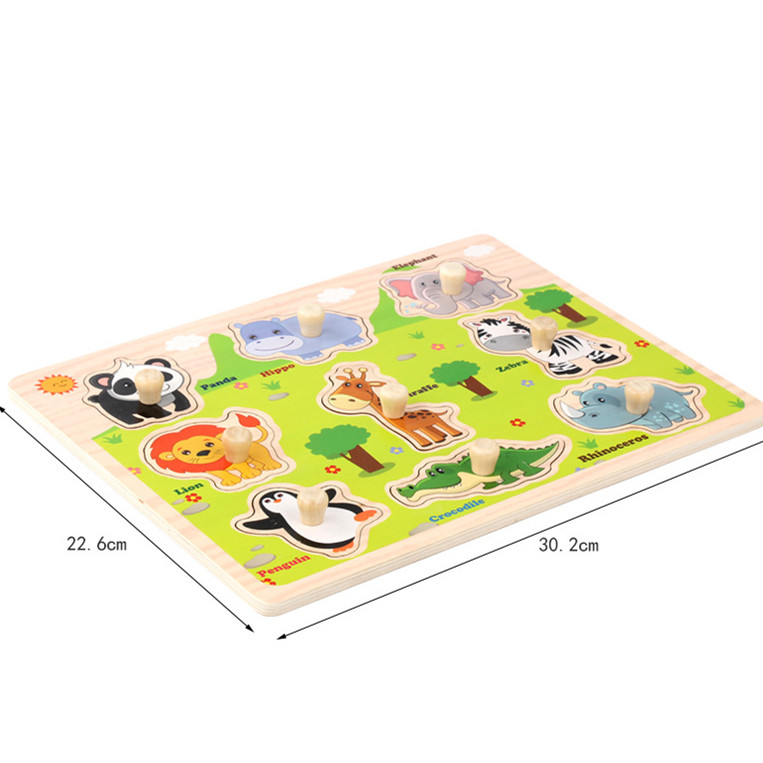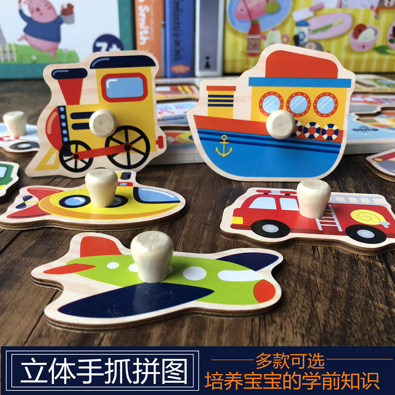 Baby stereoscopic hand grip puzzle 012-half year old child wood early teaching puzzle toy infant cognitive embedded plate