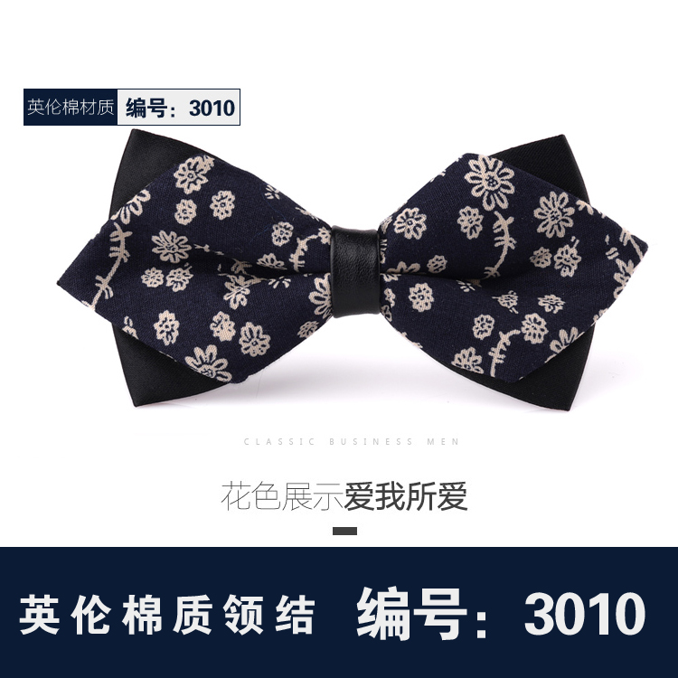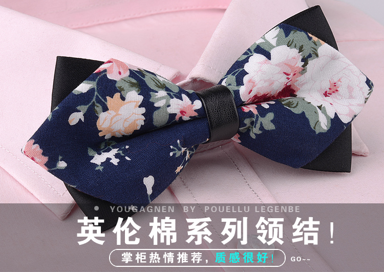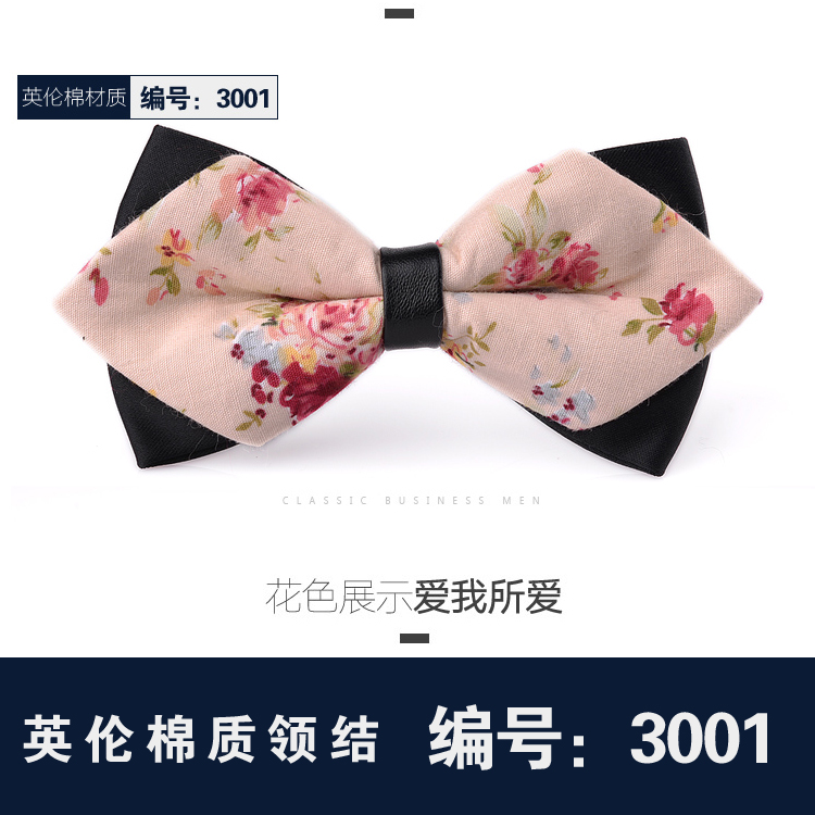 Korean version of men's formal wedding British bow tie Cotton fabric pattern Groom bow collar flowers men and Women gift box