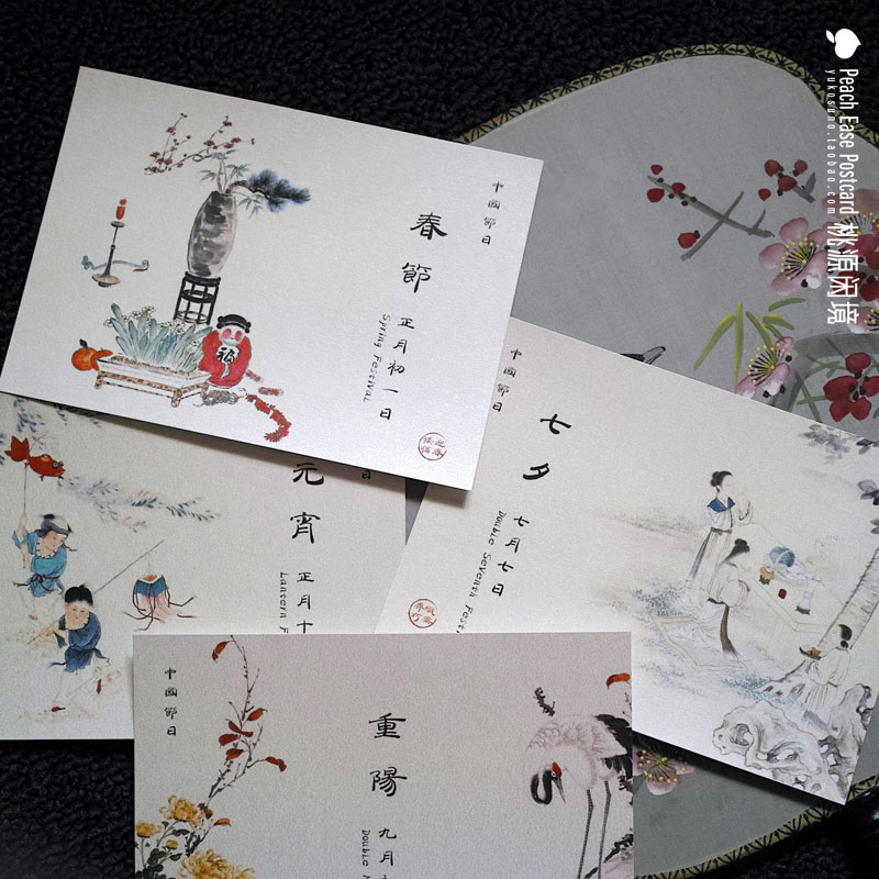 Retro Traditional Festival Chinese civilization Chinese painting Decorative painting Lantern Festival Mid-Autumn DIY extreme piece postcard