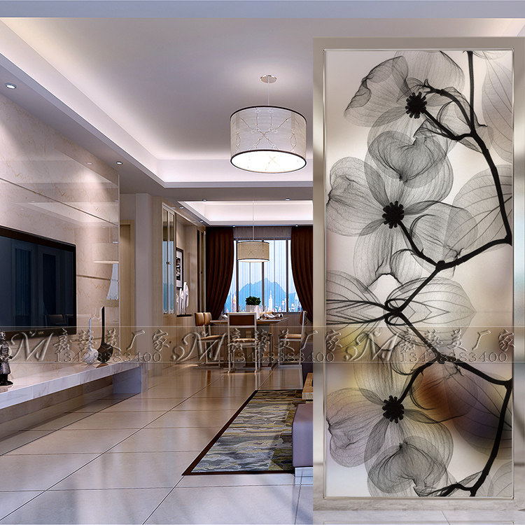 Modern art glass partition double-sided light-transmitting porch simple living room double-sided screen craft glass porch background