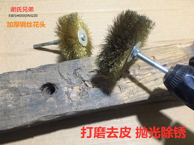 Thickened electric drill polished polished steel wire wheel thickness beating grain to bark wall polished to grey descaling deity
