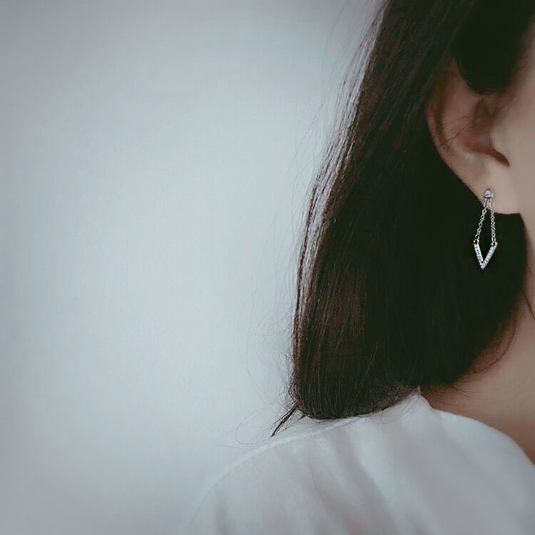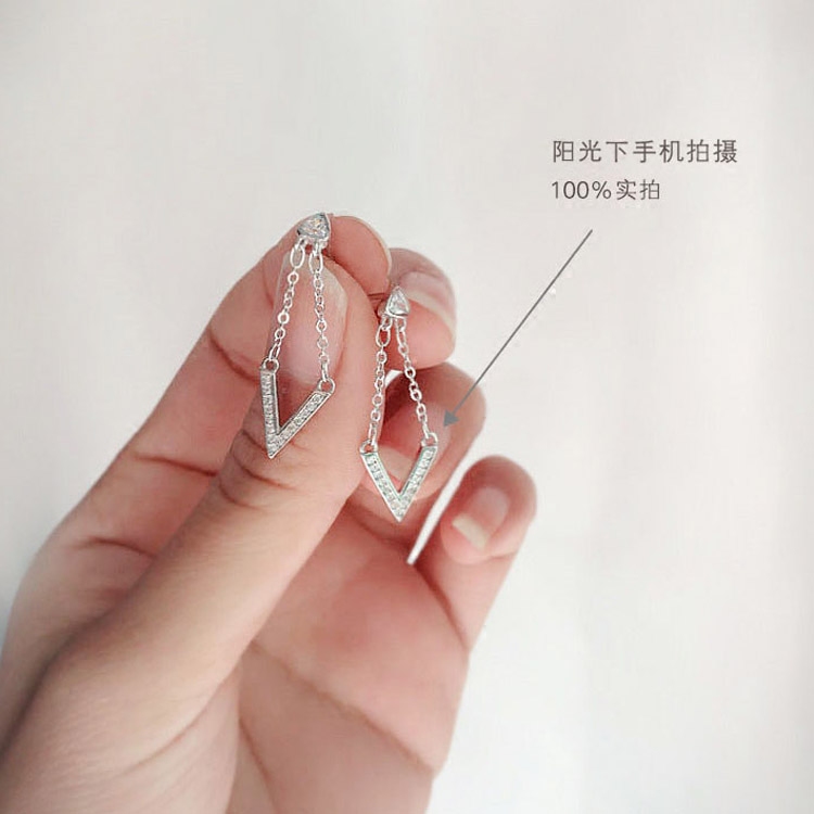 Minimalist V styling short earrings 925 pure silver plated white gold delicate temperament ear pendant personality inlaid with earthen