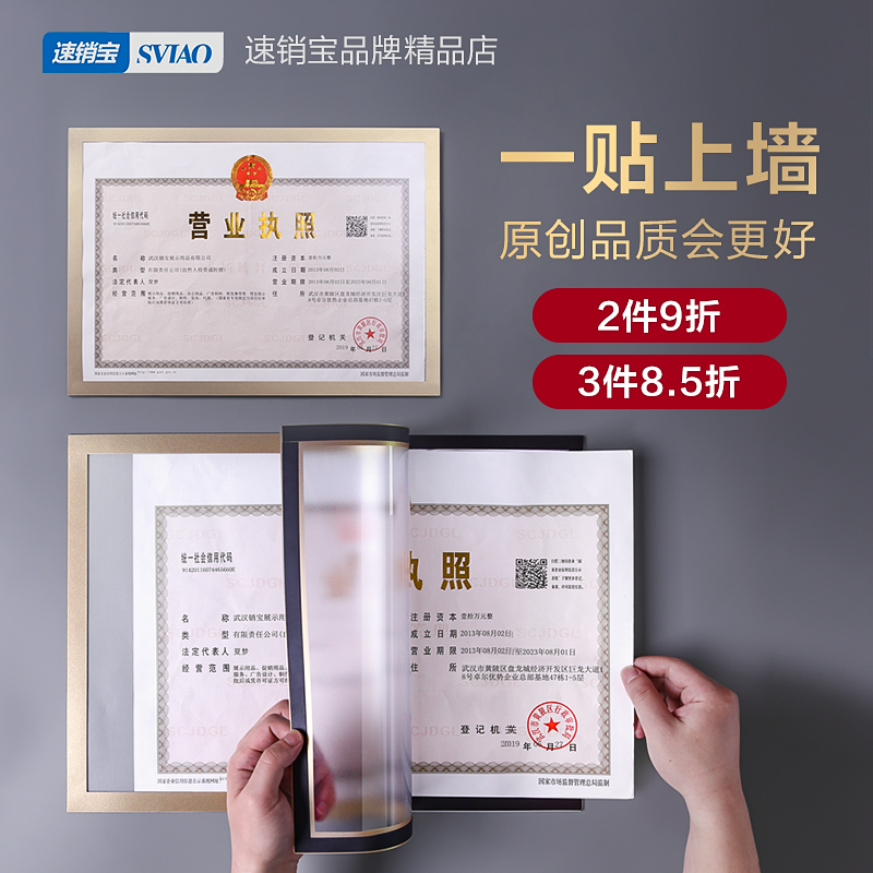 Business license frame original copy health license frame industrial and commercial three-in-one photo frame wall certificate frame protective cover