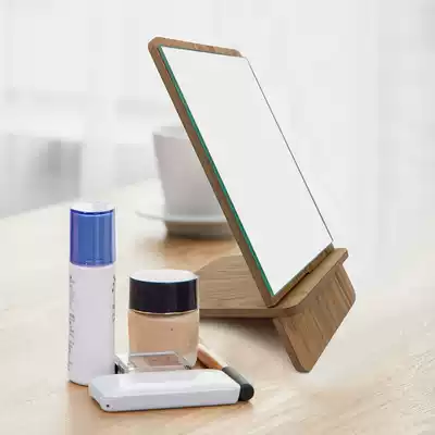 Lepin Shangju portable plug-in mirror Wooden desktop makeup mirror Net red dormitory student square makeup small mirror