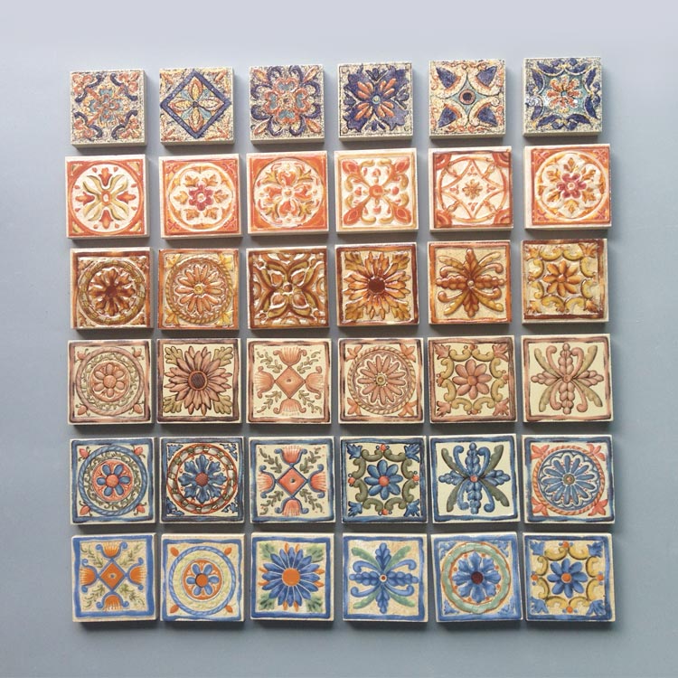 American Small Flower Brick Flower Tile Wall Brick Parquet Parquet Makeup Room Tile Kitchen Wall Brick Waist Line Imitation Ancient Brick Corner Flowers