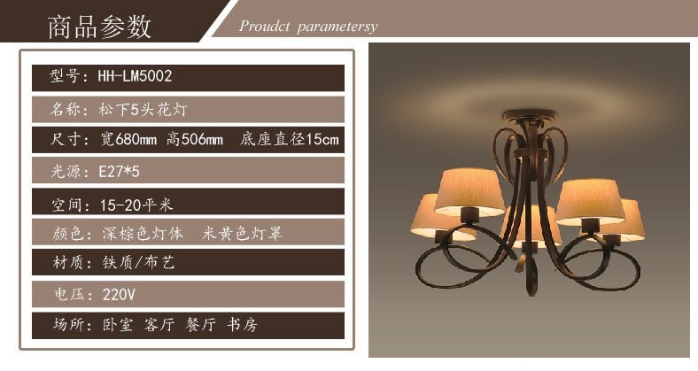 Panasonic chandelier Simple living room lamp Bedroom dining room lamp French European country lamp HH-LM5002