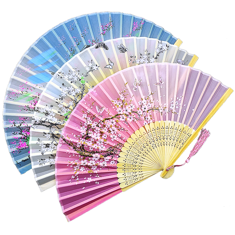 Chinese style portable fan color folding fan female folding gray printing ancient style silk red bamboo cheongsam female dance