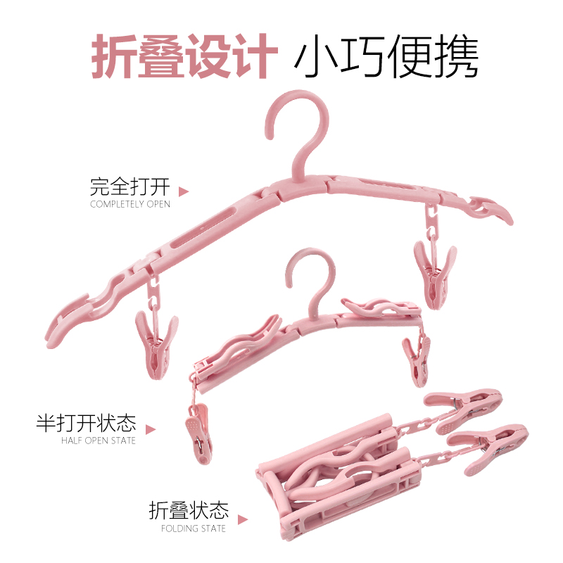 Travel folding clothes hangers Go out the hotel always have windproof clothes hangers Portable finishing clothes with clips Drying hangers