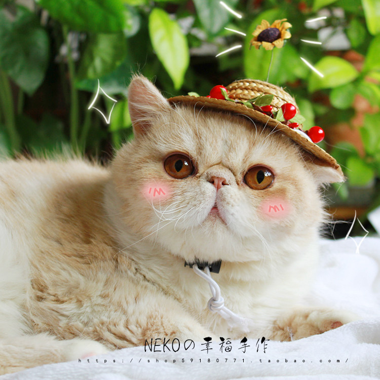 Cute sunflower pet hat straw hat cat headdress styling hat teddy dog Koji Chai dog
