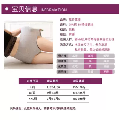 4 women's underwear high waist plus fat plus size middle-aged mother cotton breifs abdominal fat mm200 kg