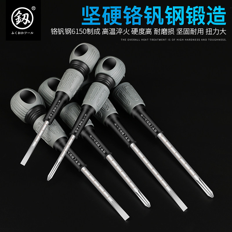 Japan Fukuoka electrician special cross word flat mouth screwdriver knife set tool strong magnetic labor-saving screwdriver screwdriver
