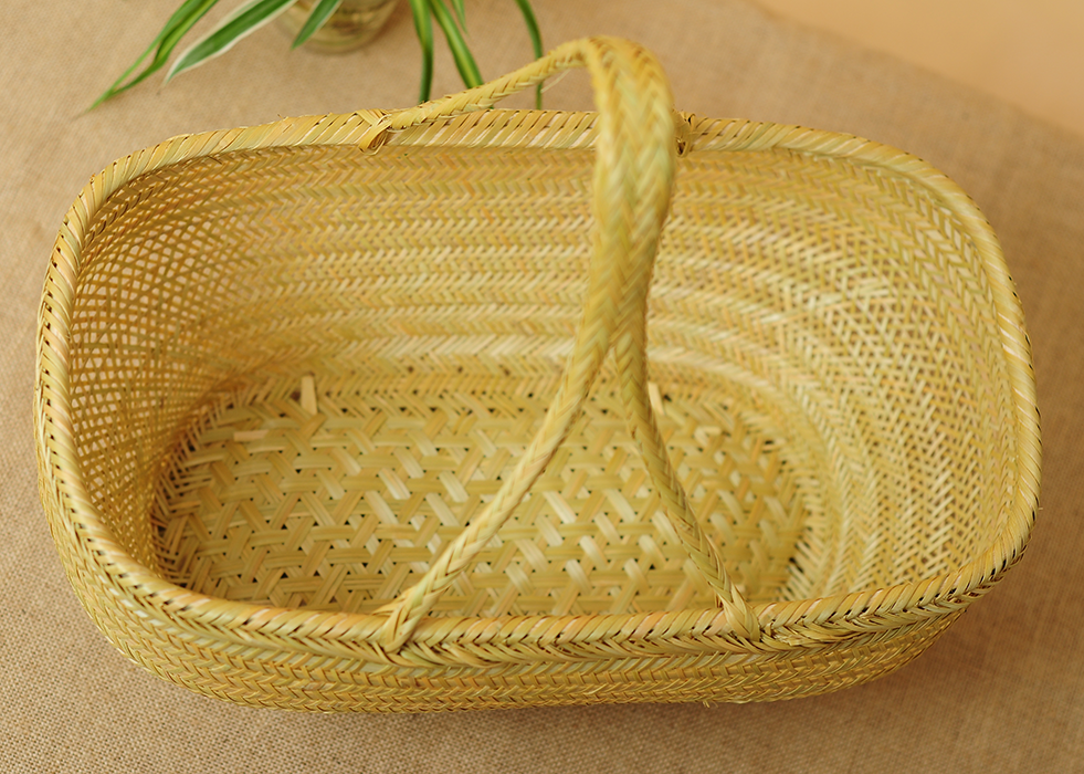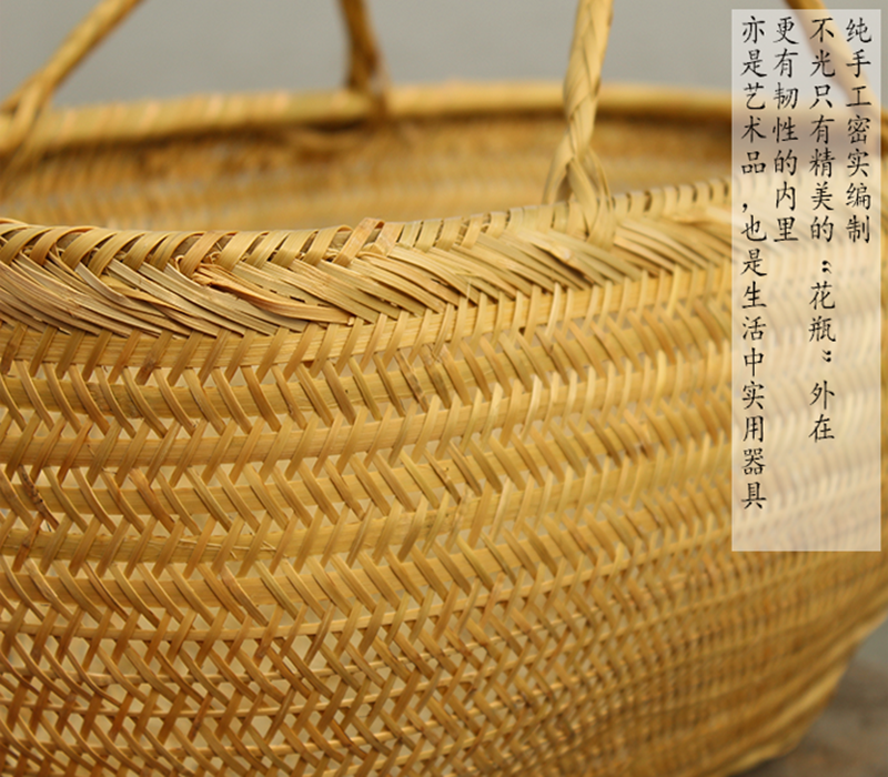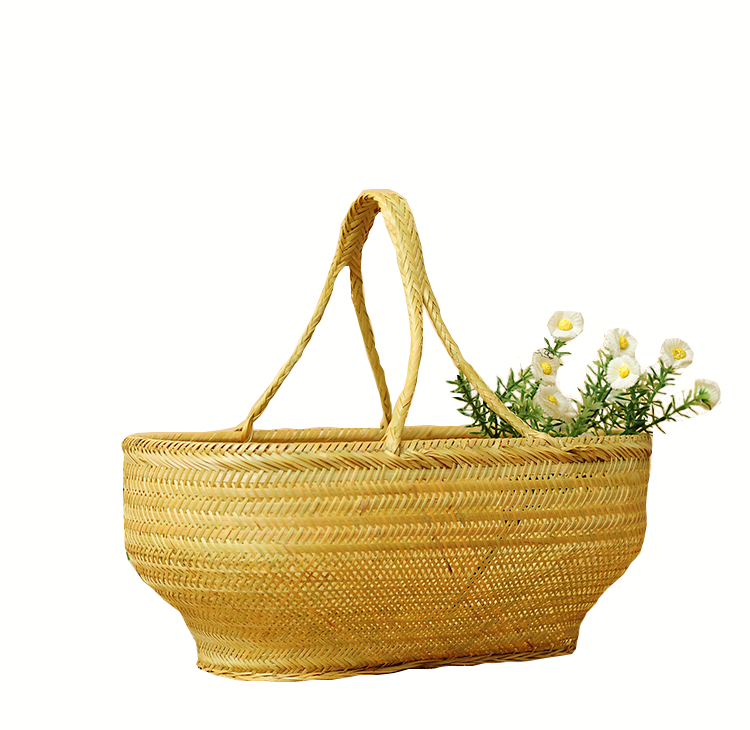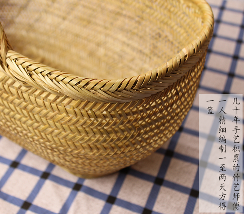 Household bamboo woven kitchen storage basket portable shopping bamboo basket desktop snack storage basket hand woven basket fruit basket