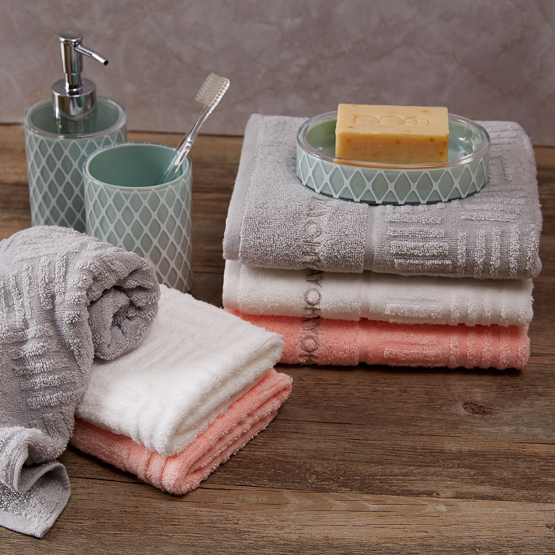 Fang towels-pink square towels-grey pink square towels 2 white scarves 2 strips of grey square towels 2 pasta scarves-white face towels-grey bath towels-powder (after sale