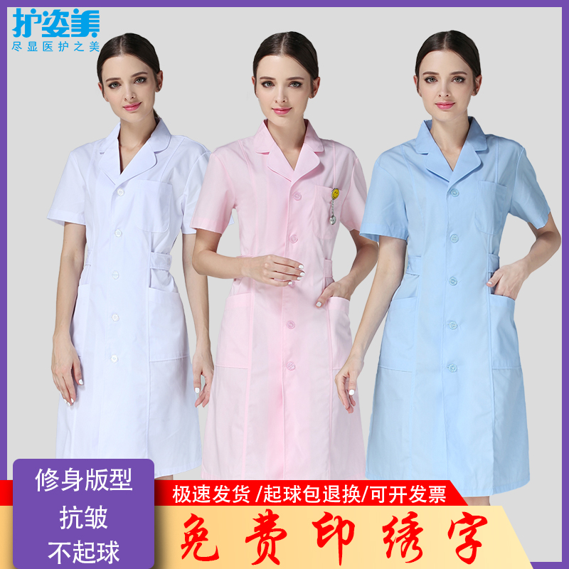 Nurse Serving Short Sleeve Woman White Coat Long Sleeve Working Dress Lady Doctor Work Clothes Skin Management Order Logo