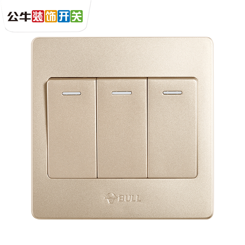 Bull Decoration Switch Socket Triple open single control switch Trinity 3 open single control power wall switch G07 gold