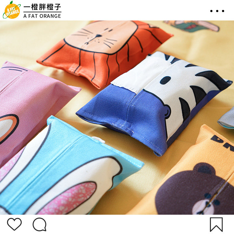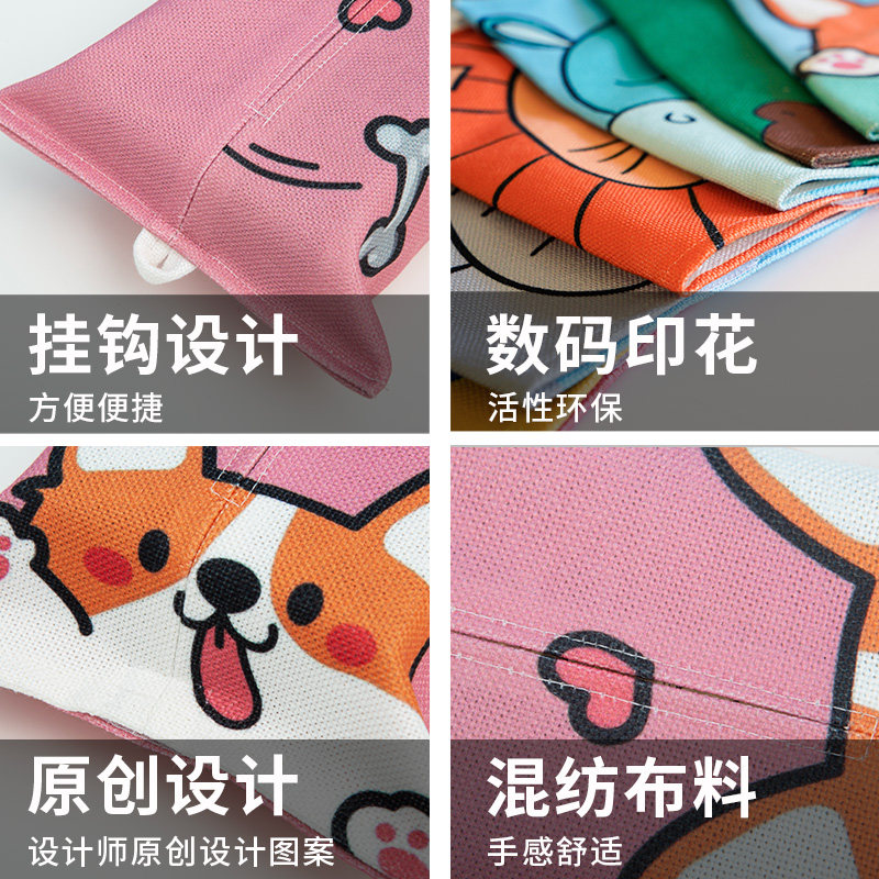 Small cotton and linen storage napkin box toilet paper box cartoon tissue bag cloth hanging paper towel set living room car