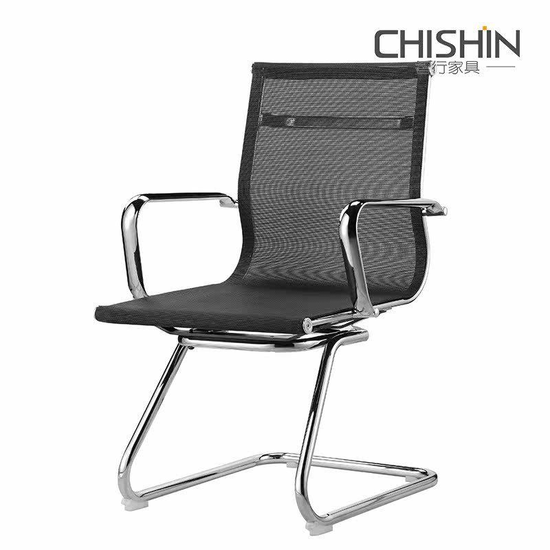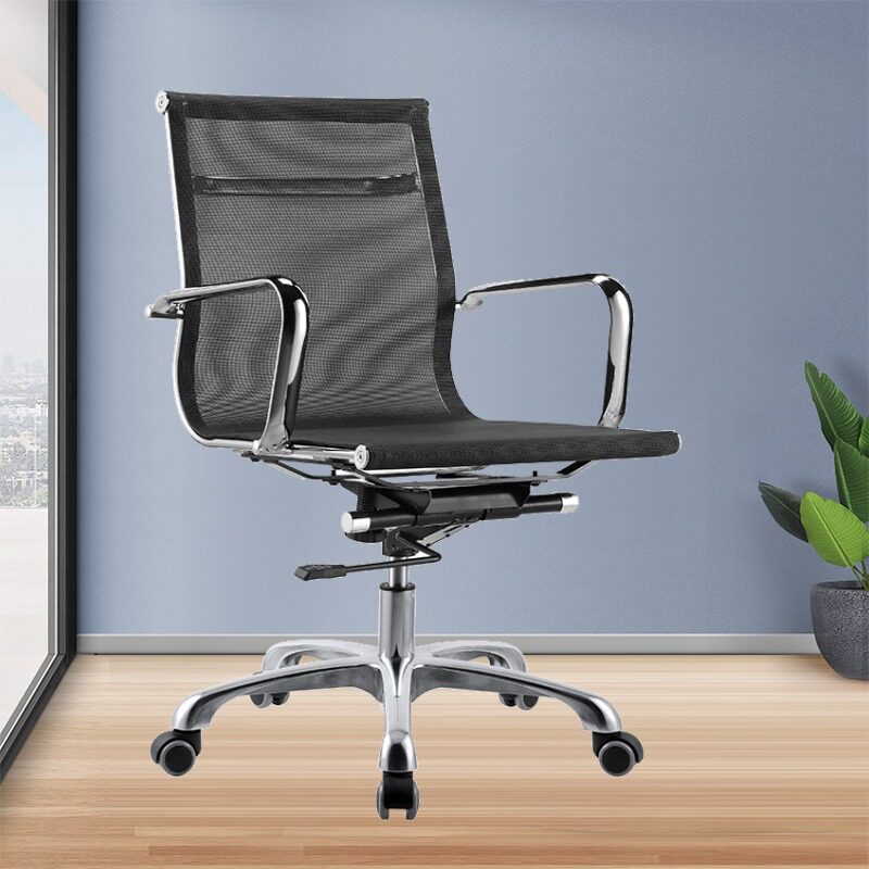 Mid-back arched office chair black executive computer chair mesh chair staff chair fixed foot armrest conference training chair