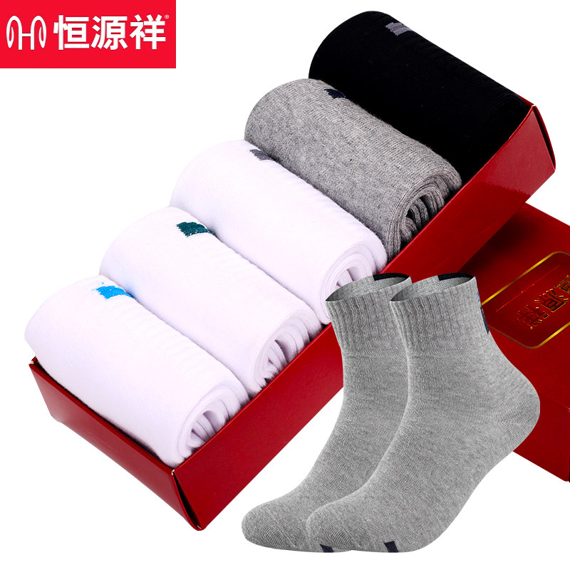 Hengyuanxiang socks men's pure cotton mid-tube cotton sports sweat-absorbing breathable spring and autumn cotton socks fashion solid color stockings