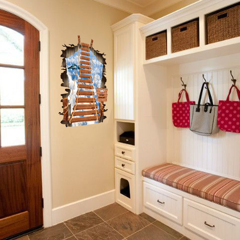 (Special Offer) Sky Rope Bridge Stairs Sunshine Holiday Fresh Green Leaves Cactus Succulent Hanging Basket Purple Dandelion