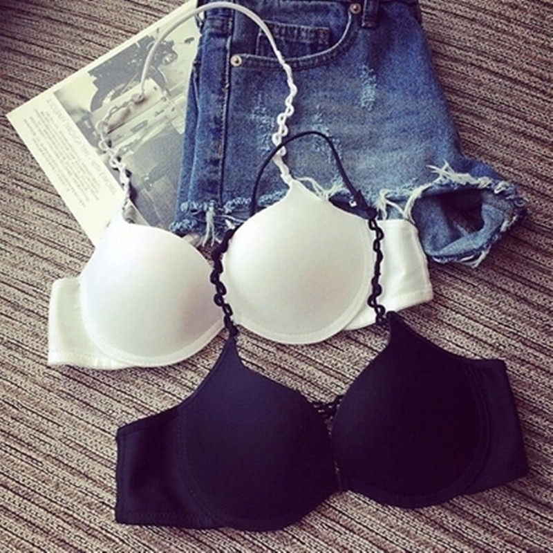 New sexy hanging neck front buckle bra beauty back incognito girl underwear Thin cup gathered small bra