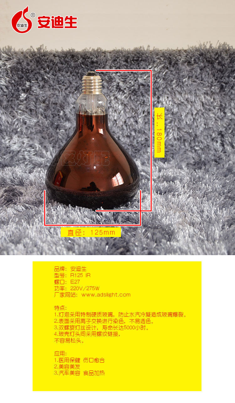 Red Physiotherapy Bulb Physiotherapy Infrared Heating Warm Light Artillery Stand Beauty Lamp Style Toasted Light Bulb Home