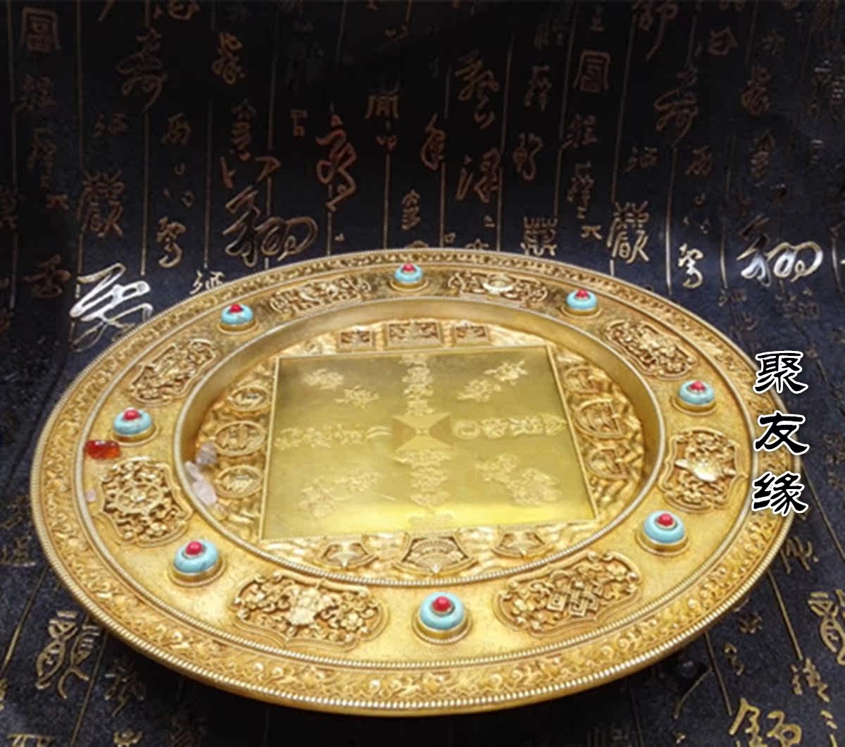 Fine pure Bronze Manzal disc 8 auspicious Manda disc Man tea Roof diameter about 24cm with depository