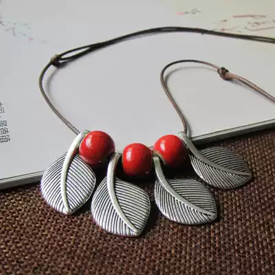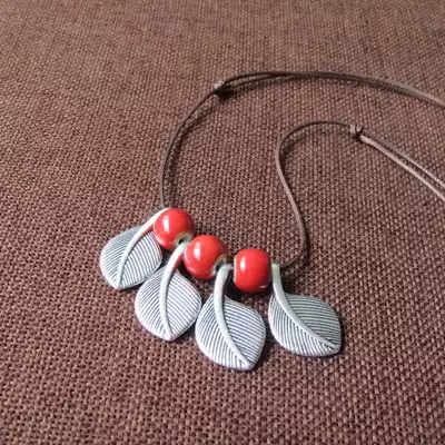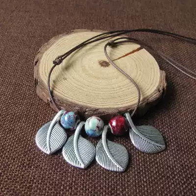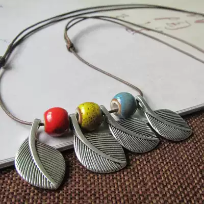 Leaf Ceramic Jewelry Necklace Women's Clothes Pendant Ceramic Pendant Ceramic Pendant Sweater Accessories Joker Long Edition Wholesale