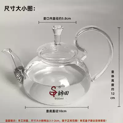 Shuaitian glass pot can be dried and burned straight fire pot 500ml Electric stove Kung Fu tea pot Heat-resistant kettle Black crystal stove pot