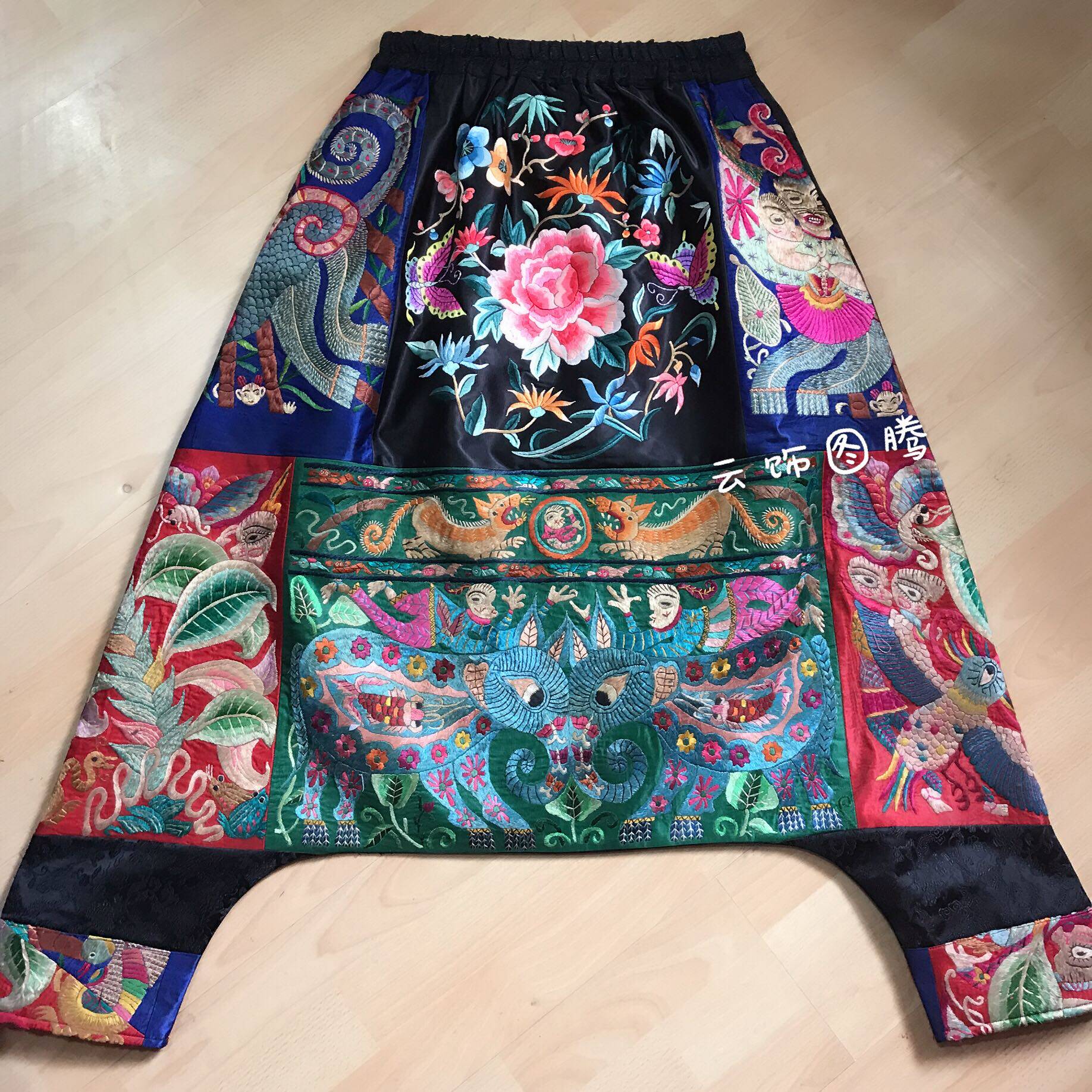 Cloud decoration totem original design women's trousers Ethnic style hand embroidery Newly embroidered embroidered down pants Harlan pants