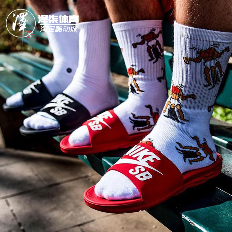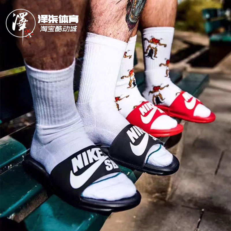 Nike NIKE SB mandarin duck black and white letters beach big red slippers black powder summer sandals 840067-601