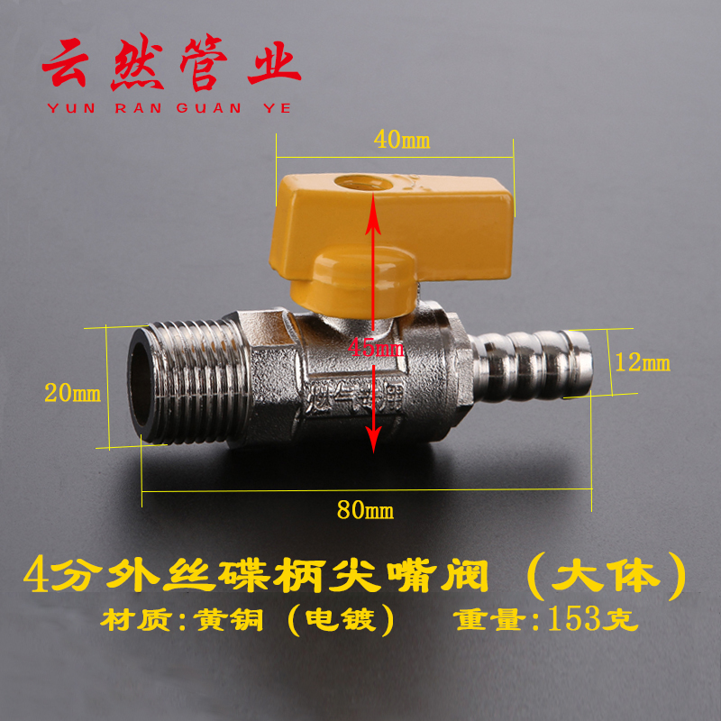 All copper thickened gas valve Gas valve Long handle ball valve Disc handle tip valve inside and outside the wire gas switch 4 points
