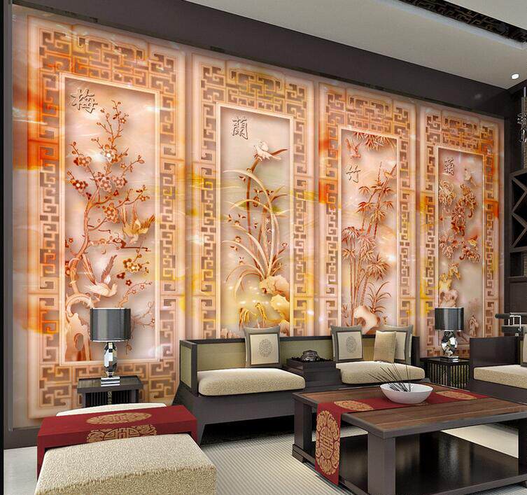 Tile background wall porch living room TV sofa background jade carving plum orchid bamboo chrysanthemum four gentlemen ceramic background