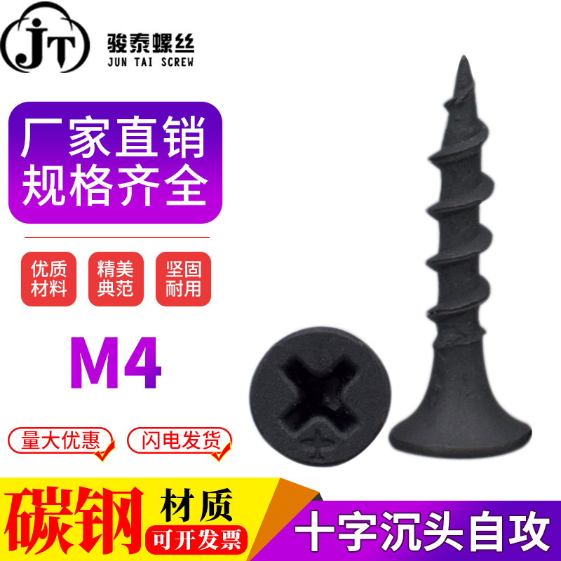 Carbon steel cross countersunk head self-tapping drywall nail M4 flat head hard self-tapping wallboard screw Black high strength wood screw