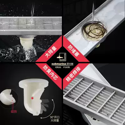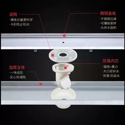 Submarine custom side row invisible deodorant floor drain rectangular all copper strip lengthy shower room large displacement bathroom