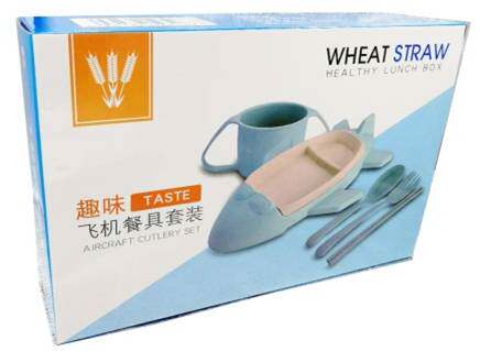 Wheat creative cartoon children's tableware set portable anti-fall dinner plate lunch box bowl chopsticks spoon fork cup can be printed logo