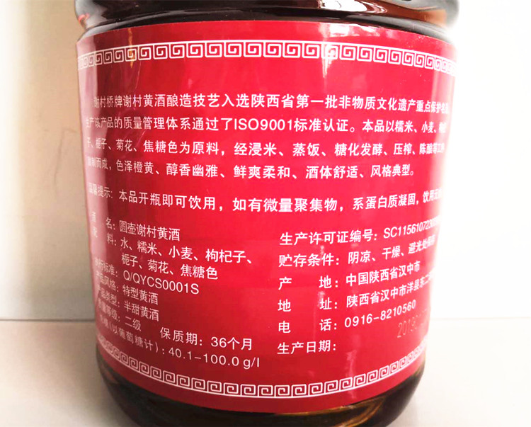 Xie Village Bridge brand round pot Shaanxi specialty Hanzhong Yang County semi-sweet Xie Village yellow wine 6 barrels 2 liters 9 degrees 24 catties FCL