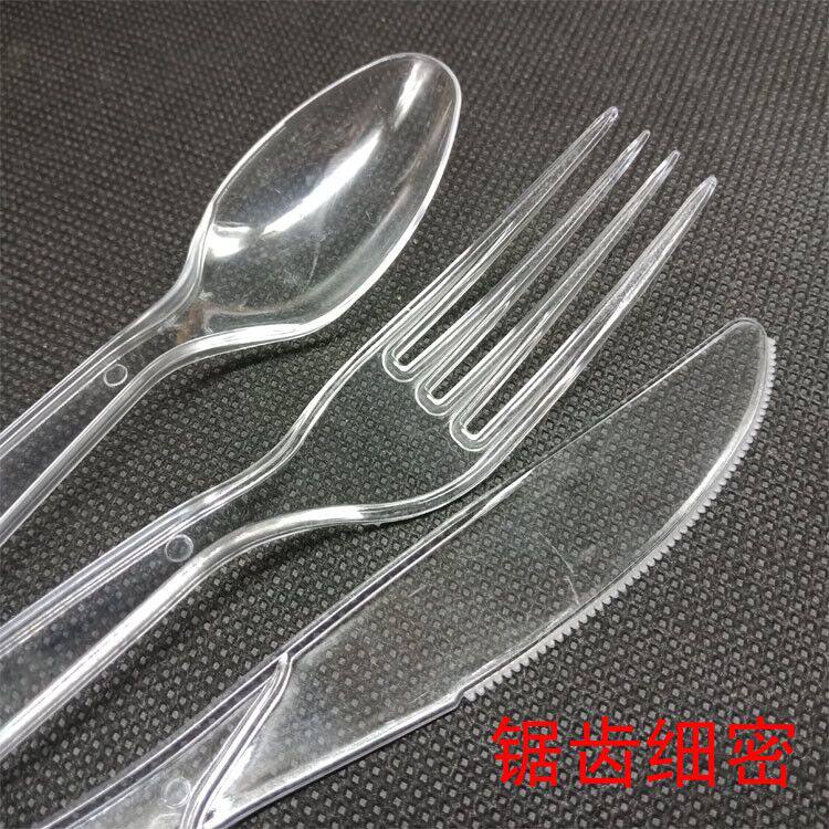 7 inch plastic knife and fork spoon thickened disposable western tableware white transparent knife and fork spoon large fork spoon long handle knife and fork