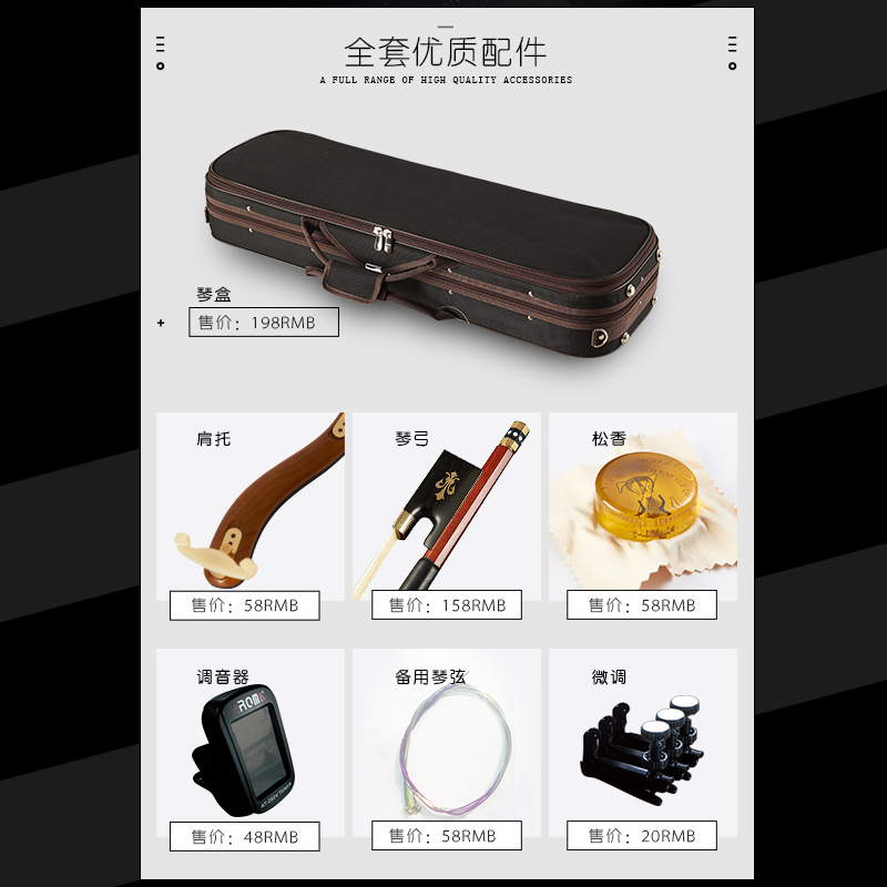 Zoryan Italian Craft Handmade Solid Wood Professional Beginner Exam Grade Performance Grade Single Board Violin